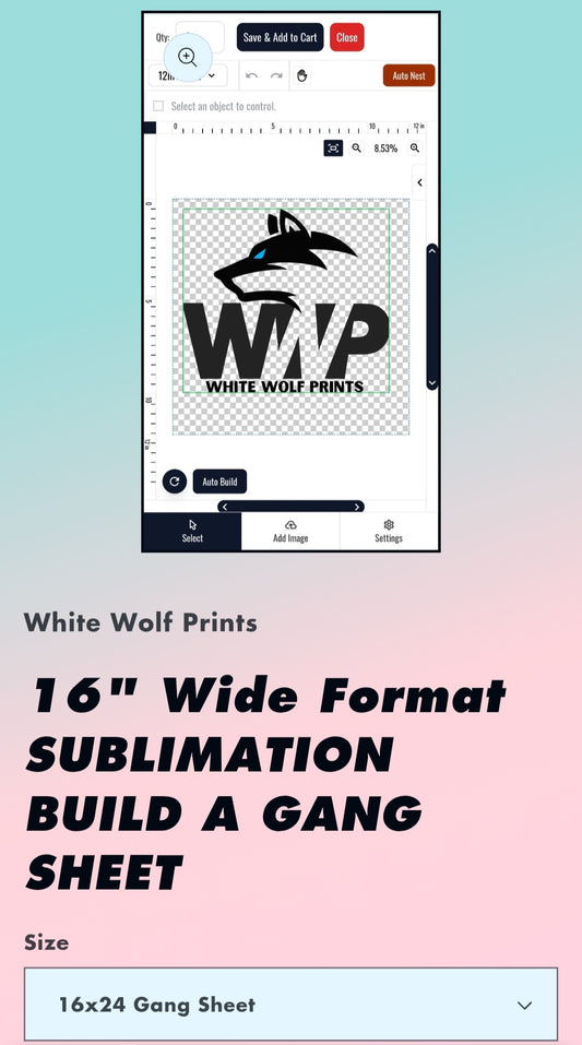 16" Wide Format SUBLIMATION BUILD A GANG SHEET